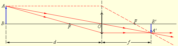 | Рисунок 3.3.3. Построение изображения в собирающей линзе |