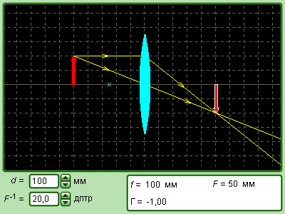 Положение изображения и его характер (действительное или мнимое) можно также рассчитать с помощью формулы тонкой линзы. Если расстояние от предмета до линзы обозначить через